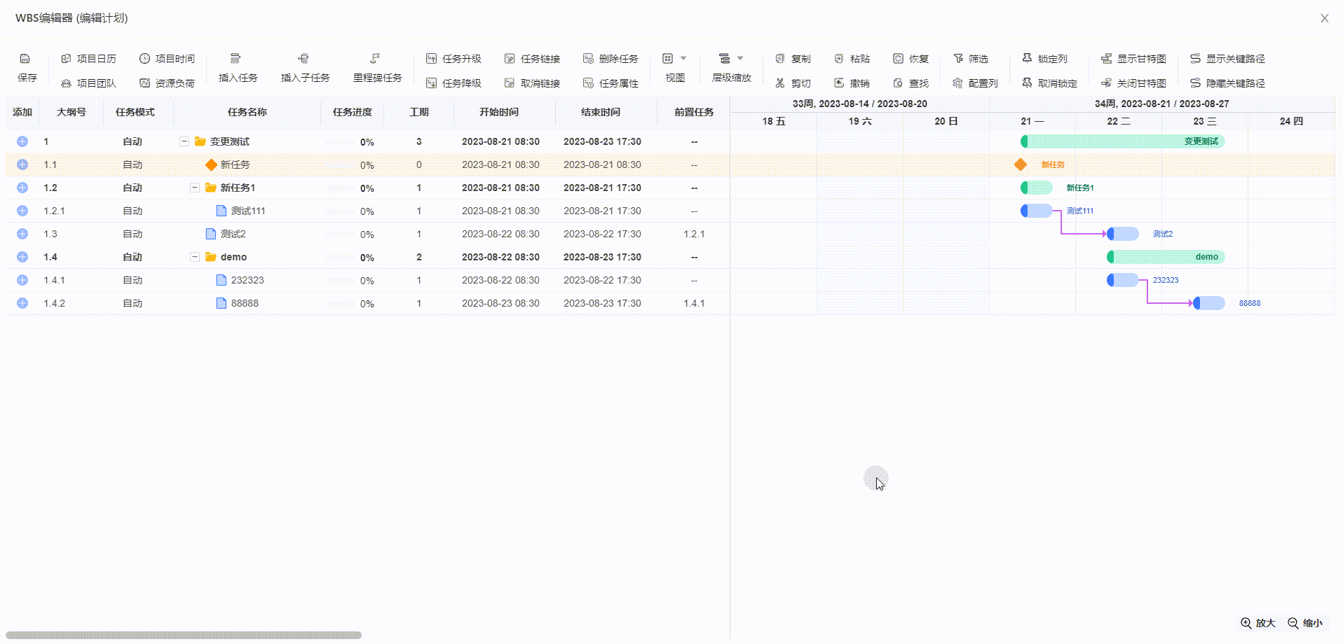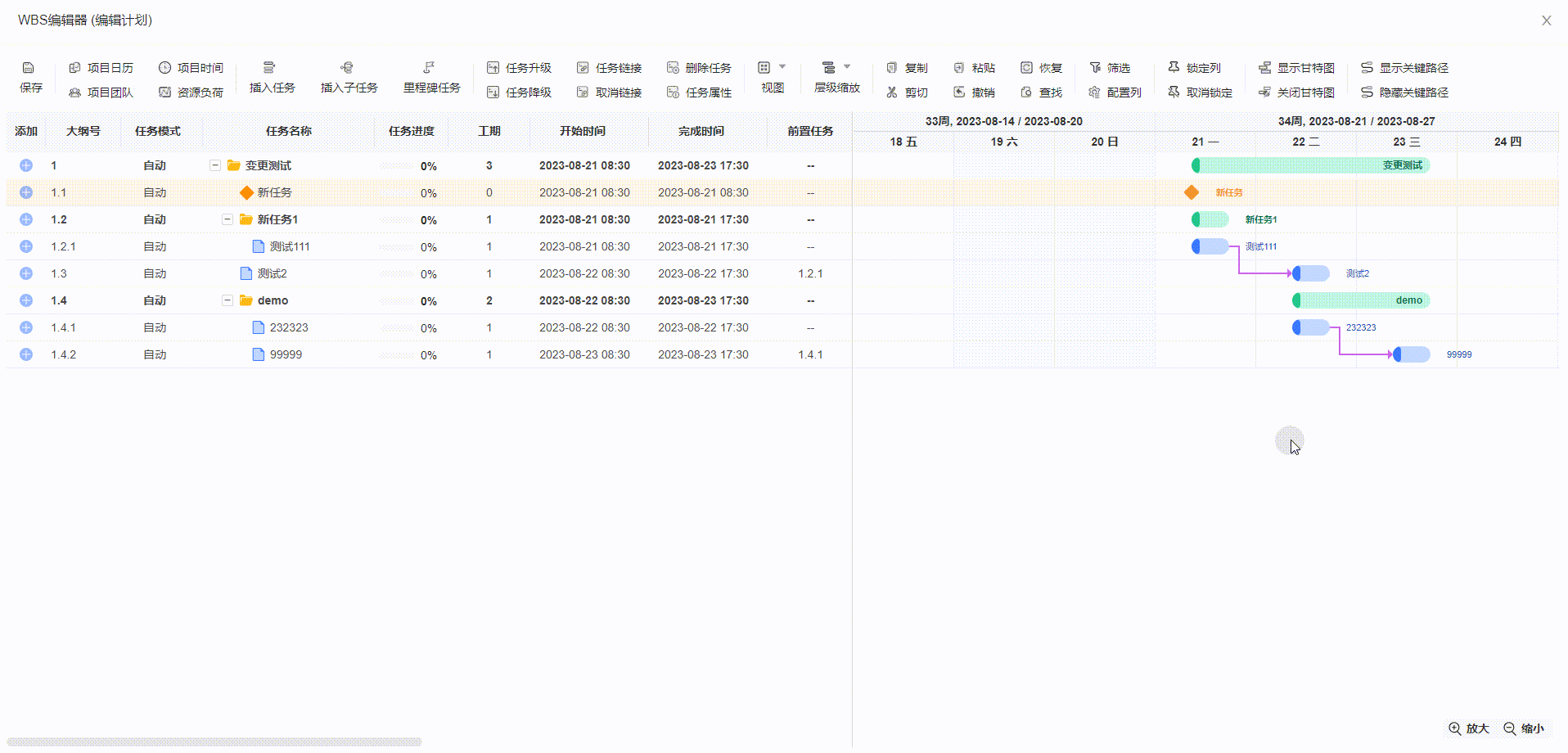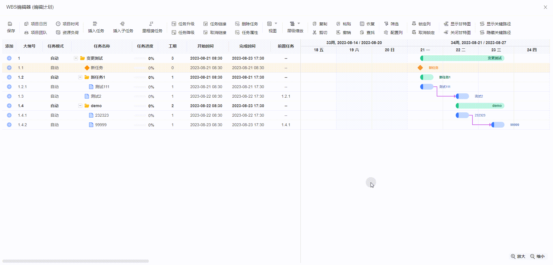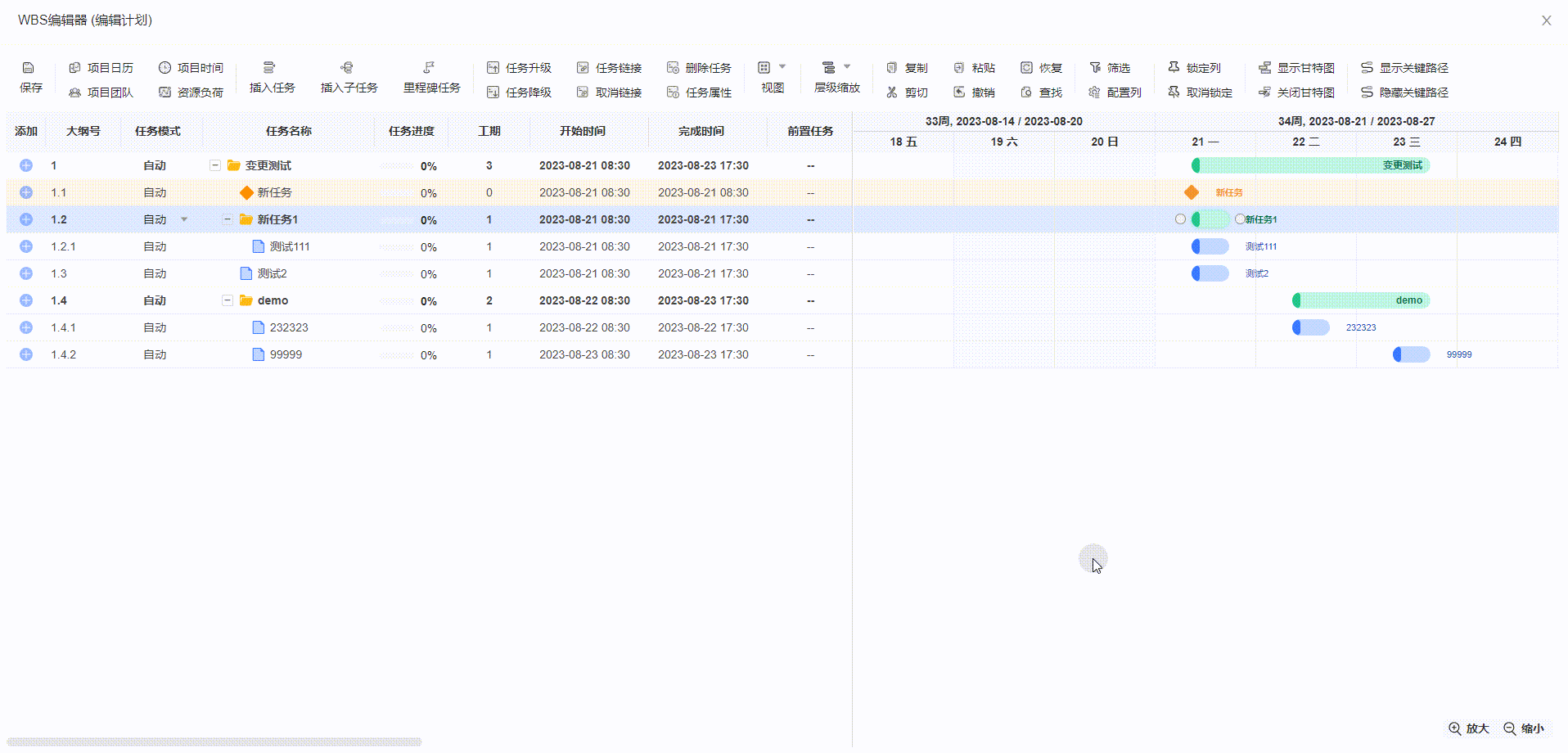 insertChildTask插入子任务、里程碑(obj: object) => void