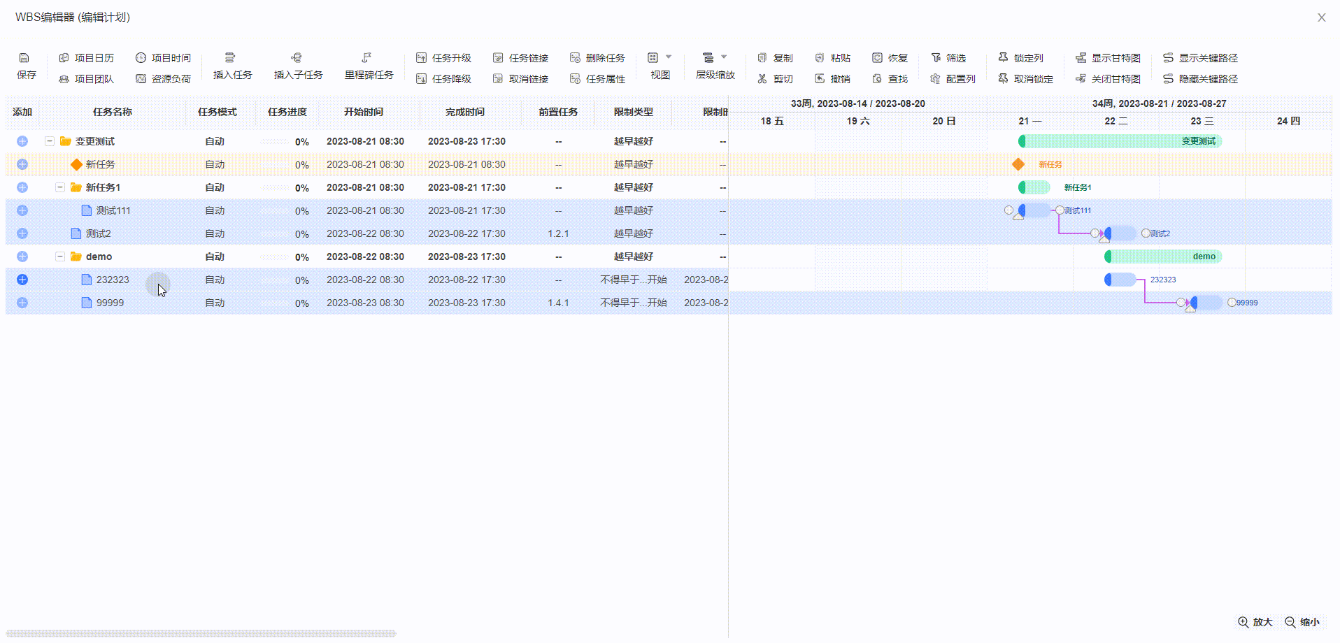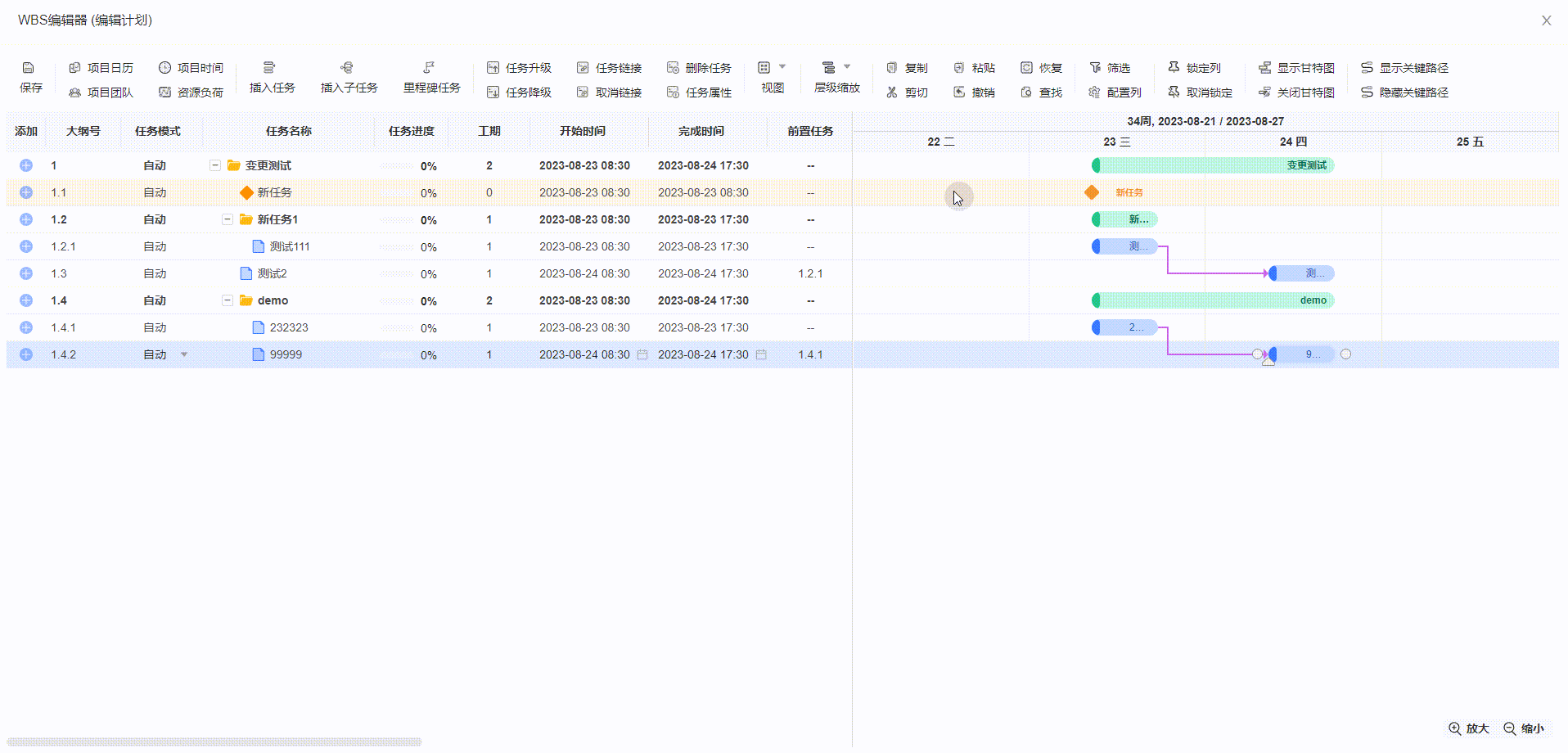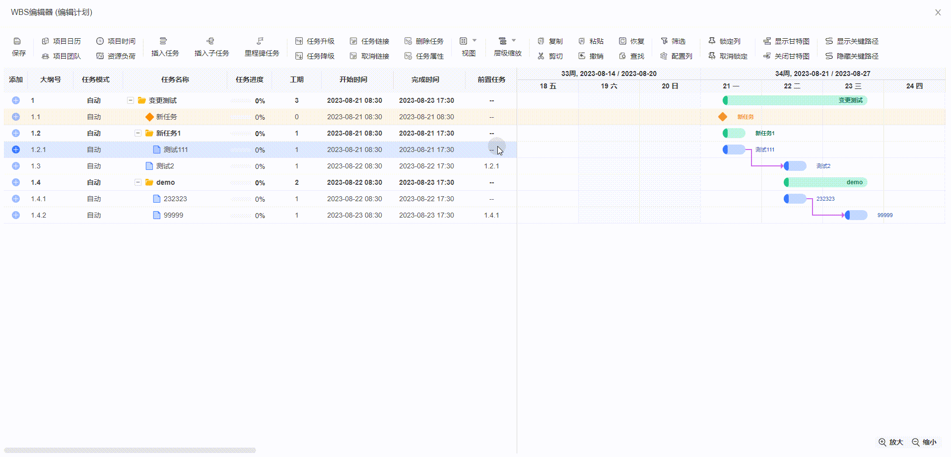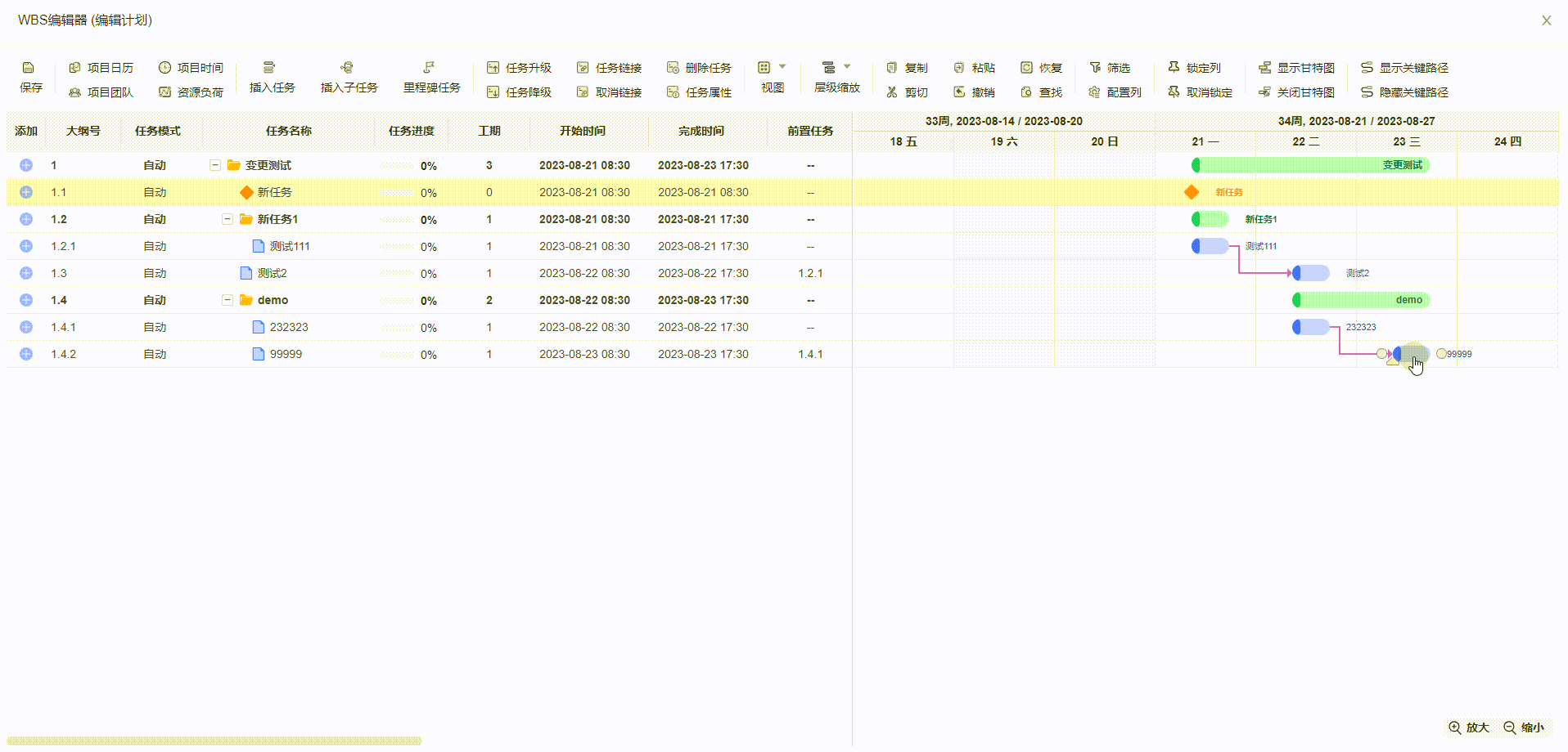 insertChildTask插入子任务、里程碑(obj: object) => void