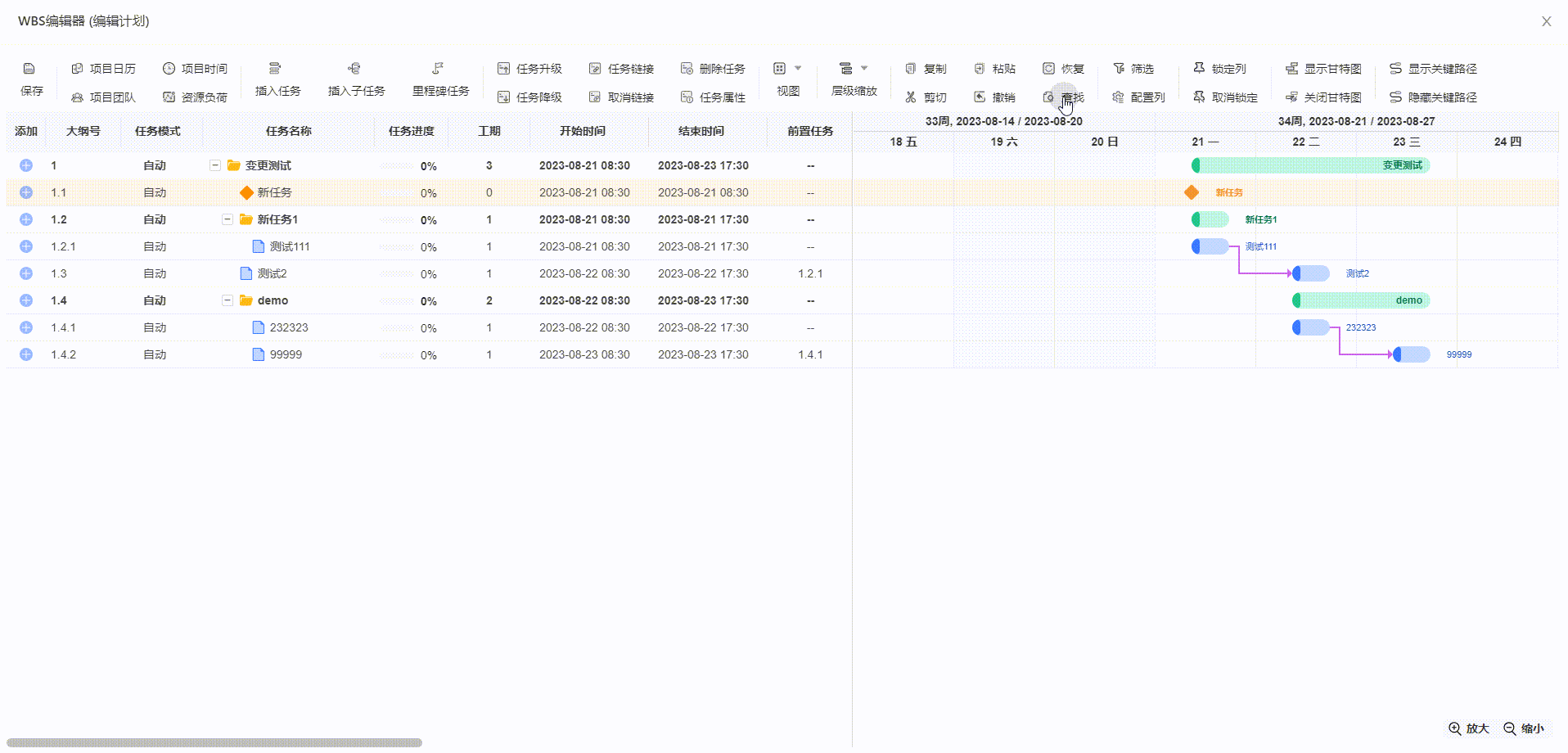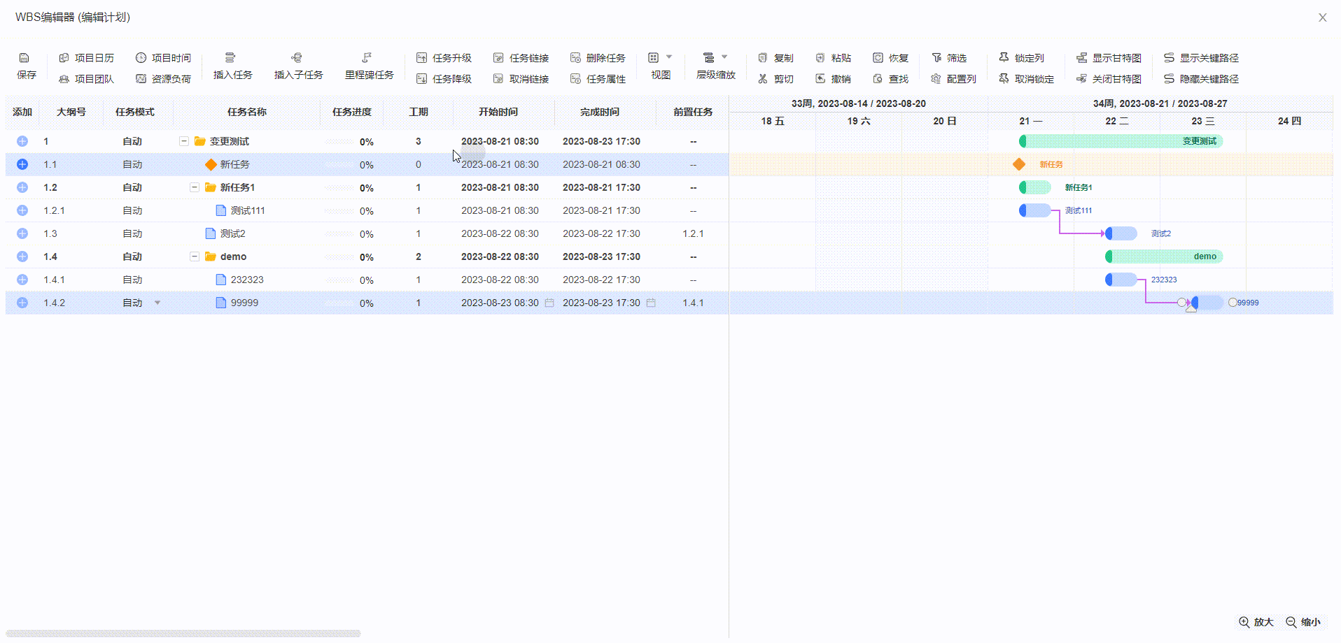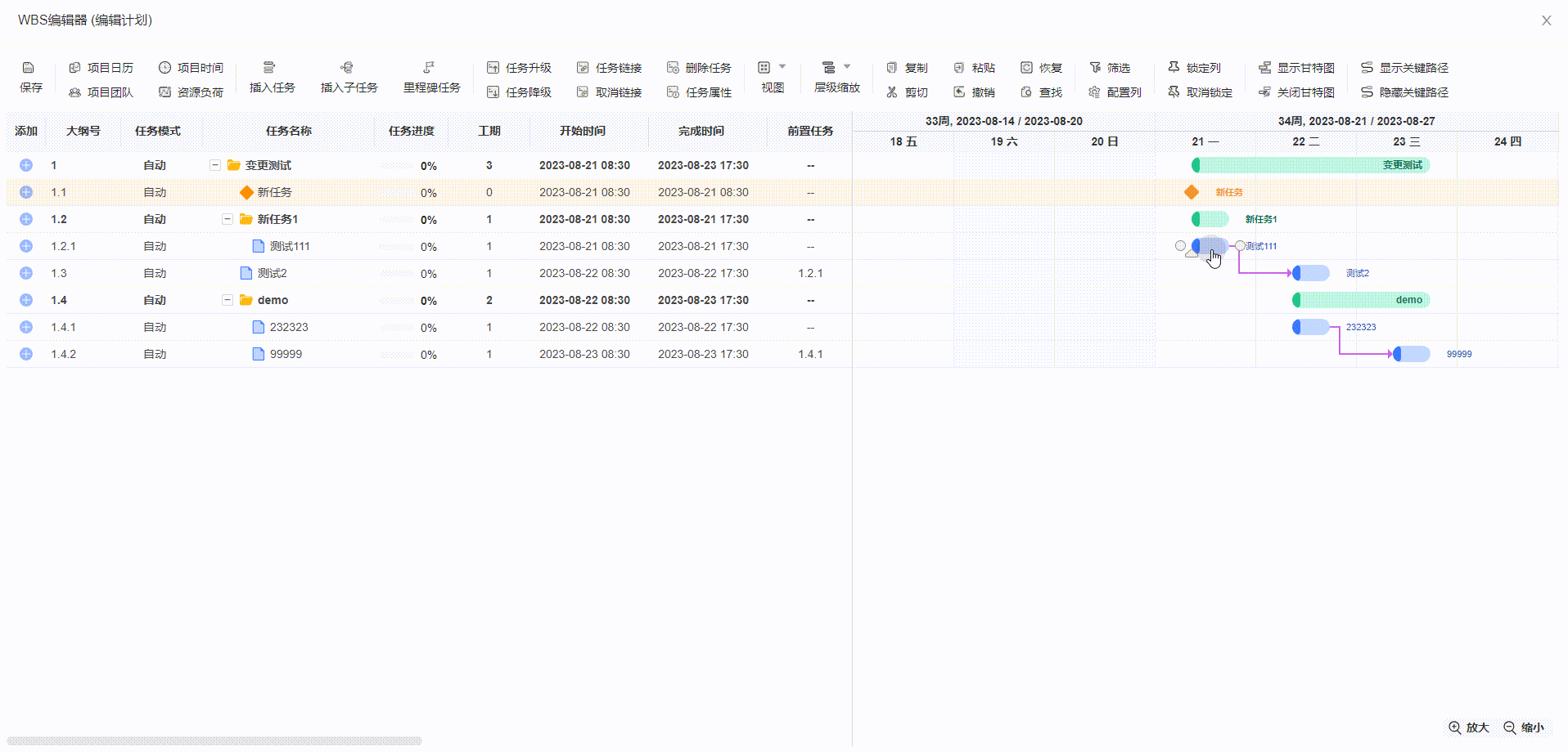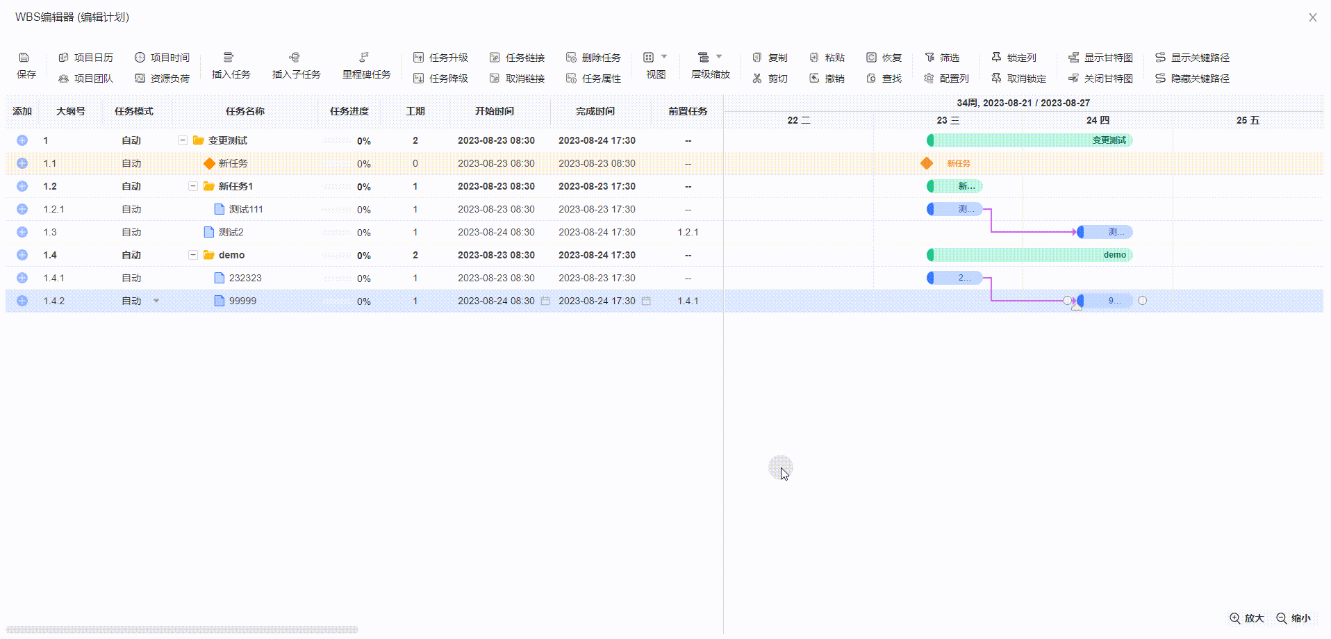 insertChildTask插入子任务、里程碑(obj: object) => void